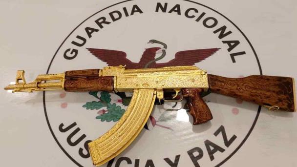 Decomisa Guardia Nacional fusil AK-47 chapado en oro en Guanajuato