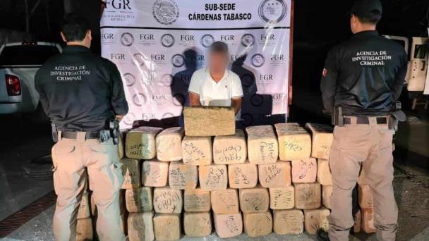 Cerca de media tonelada de marihuana que era transportada a bordo de una camioneta, fue decomisada por elementos de la Policía Federal en el Municipio de Centla, el conductor de la unidad fue detenido.