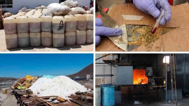 El operativo se realizó en dos fases. En la primera se incineraron cuatro toneladas 718 kilos 844 gramos y 23 mil 193 litros 771 mililitros de narcóticos, en los que se encontraban clorhidrato de metanfetamina, marihuana, fentanilo, clorhidrato de cocaína, sustancia negativa, benzofetamina, hierro, cloruro de bencilo, 1-fenetil-4-piperidona, entre otros.