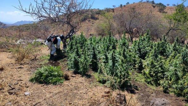 Un sembradío de aparente marihuana, en un terreno de aproximadamente 400 metros cuadrados, fue localizado y destruido en Michoacán por elementos de la Guardia Nacional (GN), en coordinación con el Ejército Mexicano.