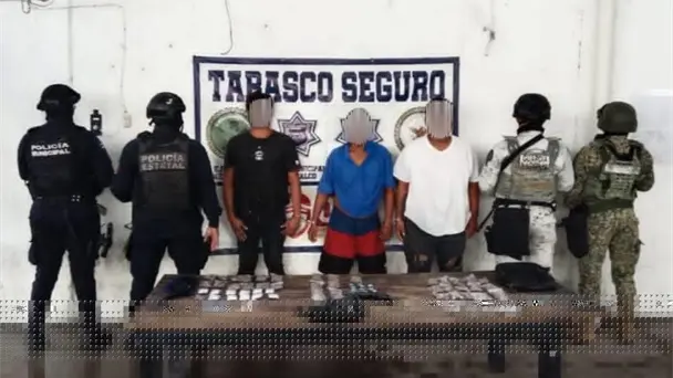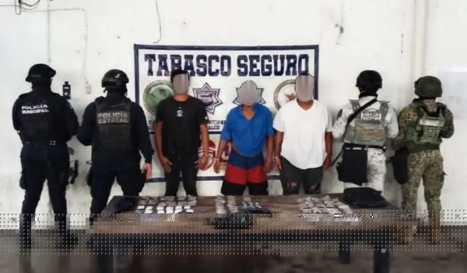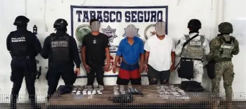 Detienen a 3 sujetos en Comalcalco con arma, cartuchos y droga; uno es campechano