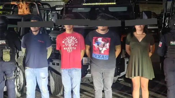 La Fuerza Interinstitucional de Reacción Táctica (FIRT) Olmeca detuvo a 4 personas por su presunta responsabilidad en los delitos de extorsión, secuestro y narcomenudeo, en Cárdenas.