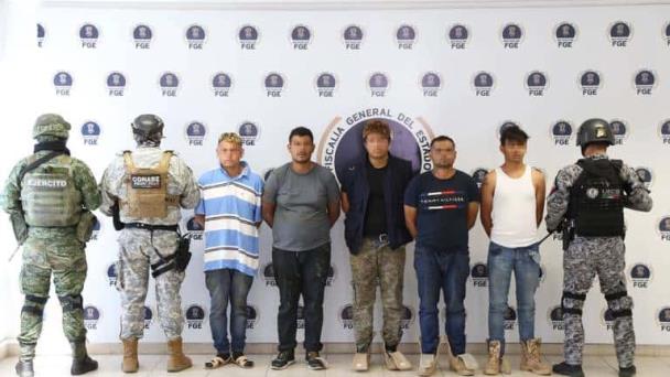 Fueron Fernando José E., José Antonio Q., Adrián C., Juan Antonio M. e Irvin R., a quienes se les aseguraron tres rifles AK-47 calibre 7.62, dos rifles calibre .22, un fusil .270, una escopeta semiautomática calibre 12 mm y un aditamento lanzagranadas calibre 40 mm.; así como cargadores y cartuchos útiles. También les incautaron varios costales con marihuana.
