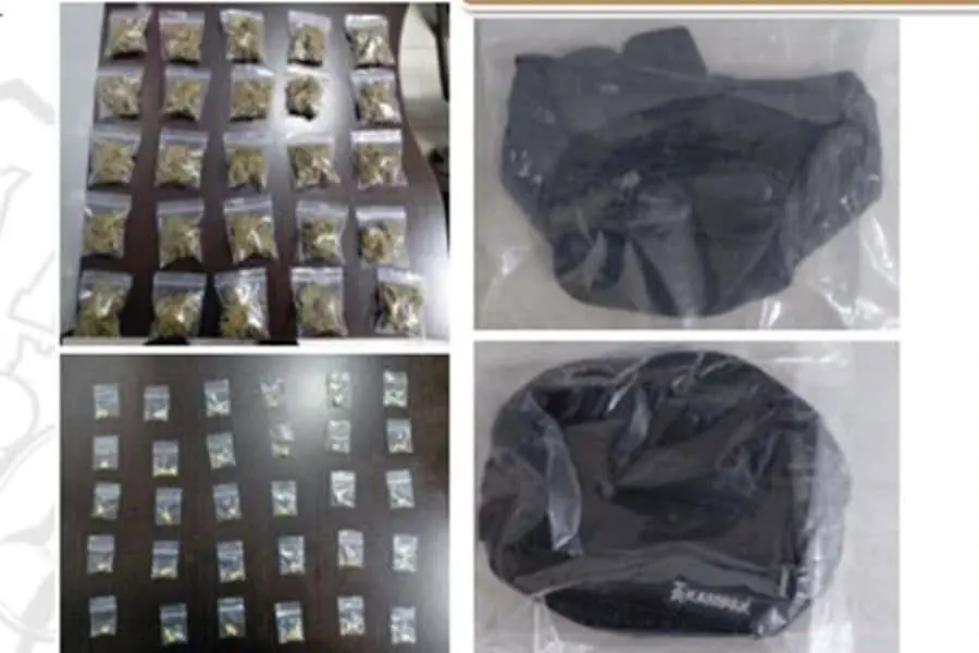 Motivo por el que se les marcó el alto y se les llevó a cabo una revisión de rutina, localizándoles varias bolsitas transparentes que en su interior contenían hierba seca con características similares a la marihuana; otras con sustancia granulosa similares al cristal; una cangurera color negro con diversos cierres y una pechera color negro, así como dinero en efectivo.
