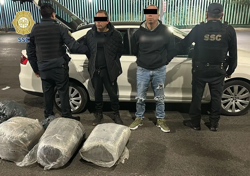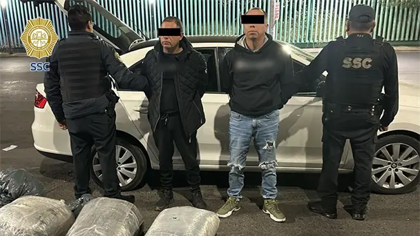 La Secretaría de Seguridad Ciudadana (SSC) de la Ciudad de México detuvo a dos hombres en posesión de cuatro bultos confeccionados con plástico transparente, con más de 30 kilogramos de marihuana en la alcaldía Iztapalapa.