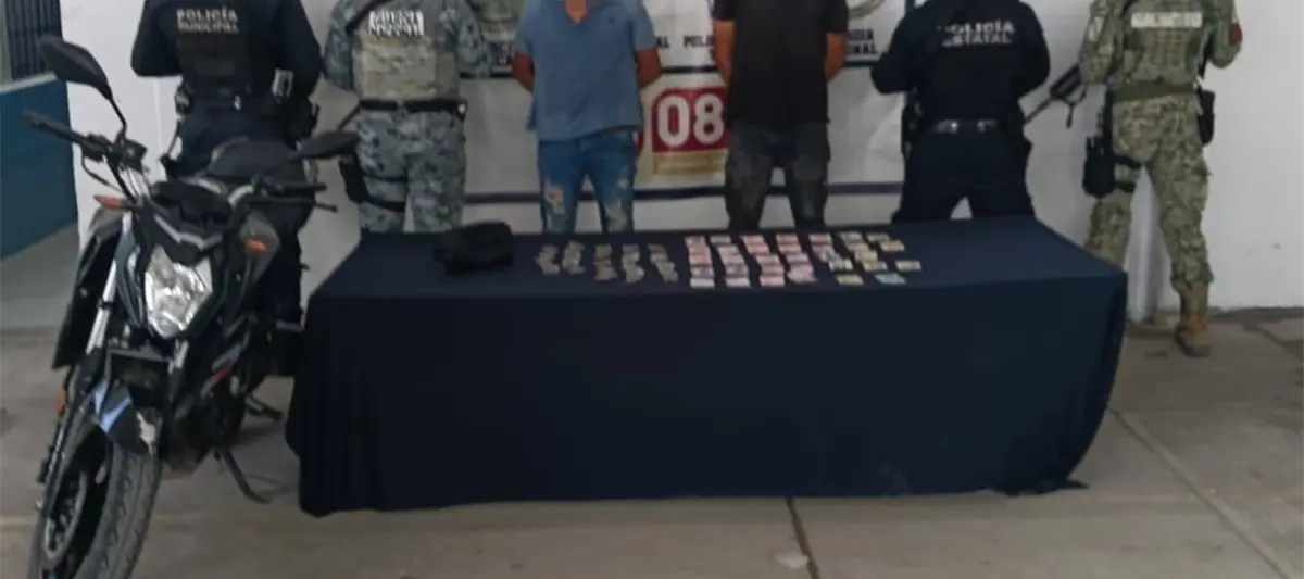 Fue en la calle Alberto Rodríguez, cerca de la Central Camionera, donde elementos de las policías municipal y estatal, Ejército, Marina y Guardia Nacional detectaron a los dos masculinos en actitud sospechosa y estacionados a bordo de una motocicleta.