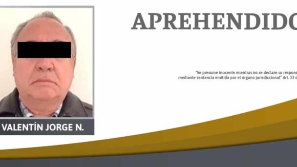 En seguimiento a las indagatorias, la Fiscalía Especializada de Combate a la Corrupción, solicitó y obtuvo de la autoridad judicial una orden de aprehensión en contra de Valentín Jorge Meneses, quien fue detenido la mañana de ayer sábado en el barrio de Xanenetla de la capital poblana.
