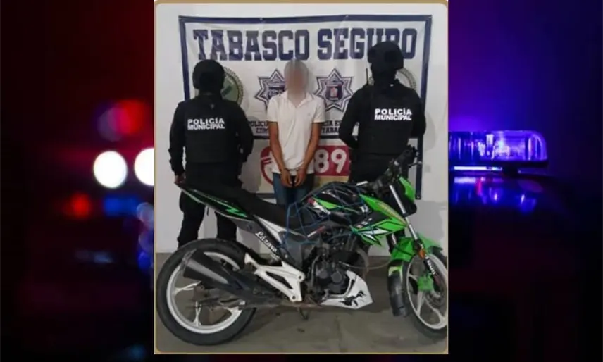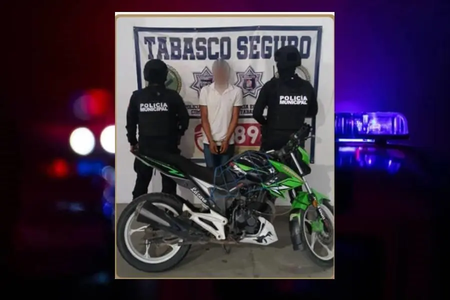 Un hombre fue detenido en Villa Carlos Greene, Comalcalco, por elementos de la Dirección de Seguridad Pública de Comalcalco, en posesión de una motocicleta con reporte de robo.