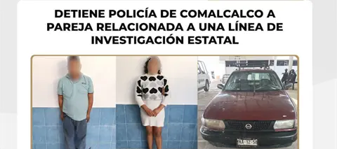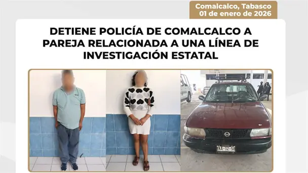 La Policía Municipal de Comalcalco detuvo a una pareja relacionada con una línea de investigación que realiza el Grupo Tiburones de la Secretaría de Seguridad y Protección Ciudadana (SSPC).