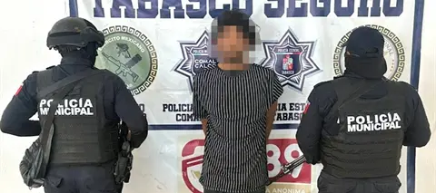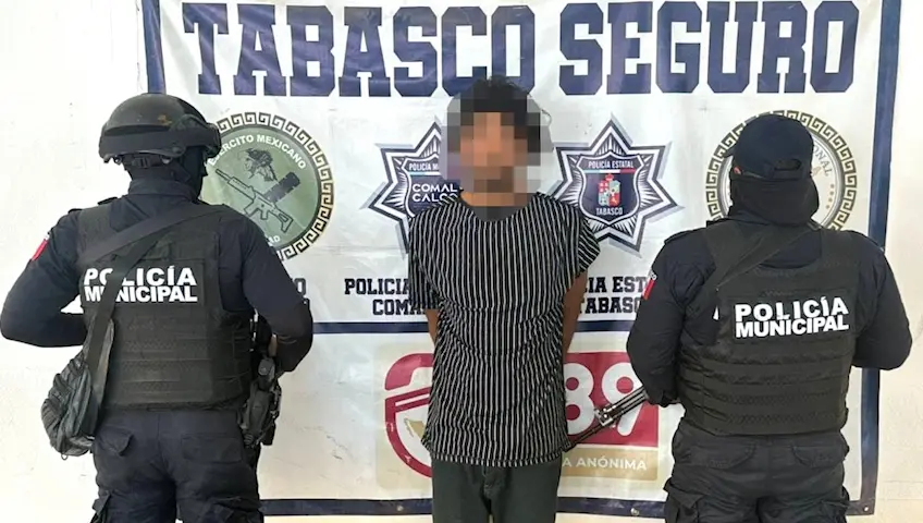 De acuerdo con las autoridades, durante un patrullaje en la ranchería Sargento López primera sección, los uniformados detectaron al sujeto, quien al notar la presencia de los elementos de la Dirección de Seguridad Pública Municipal pretendió darse a la fuga.