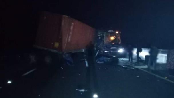 De acuerdo con algunos medios locales, el autobús se impactó contra la caja del tráiler a 3 kilómetros de la caseta de cobro.