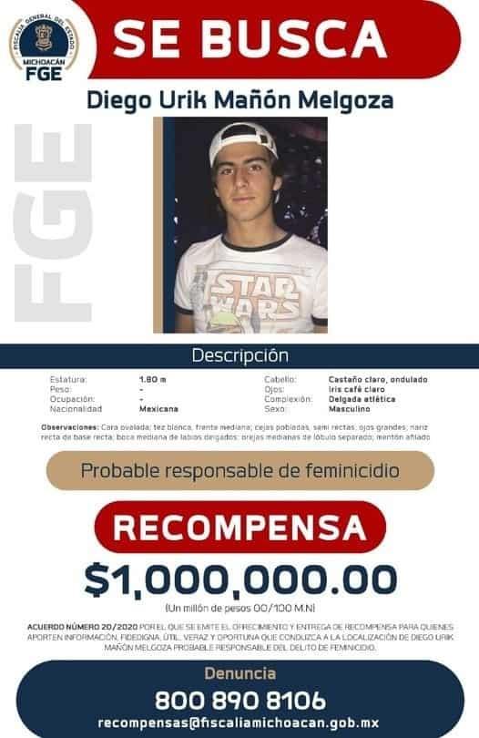 El gobierno de Michoacán, ya ha ofrecido un millón de pesos a quien aporte información del sospechoso.