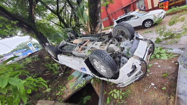 El exceso de velocidad y el asfalto mojado, presuntamente provocaron que una camioneta se volcara cuando circulaba sobre el bulevar Luis Donaldo Colosio.
