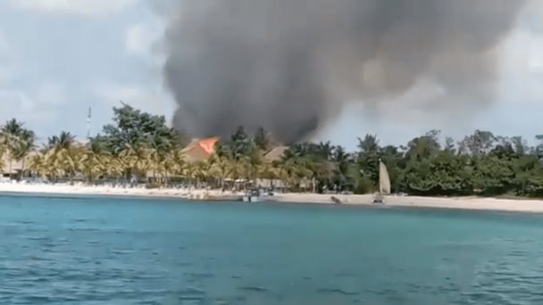 El incendio provocó una densa columna de humo que se podía observar a lo lejos y que fue captada por turistas que navegaban por las aguas del mar Caribe.