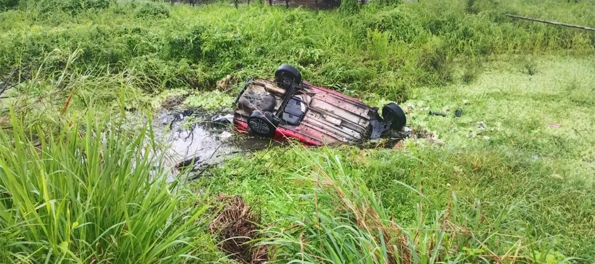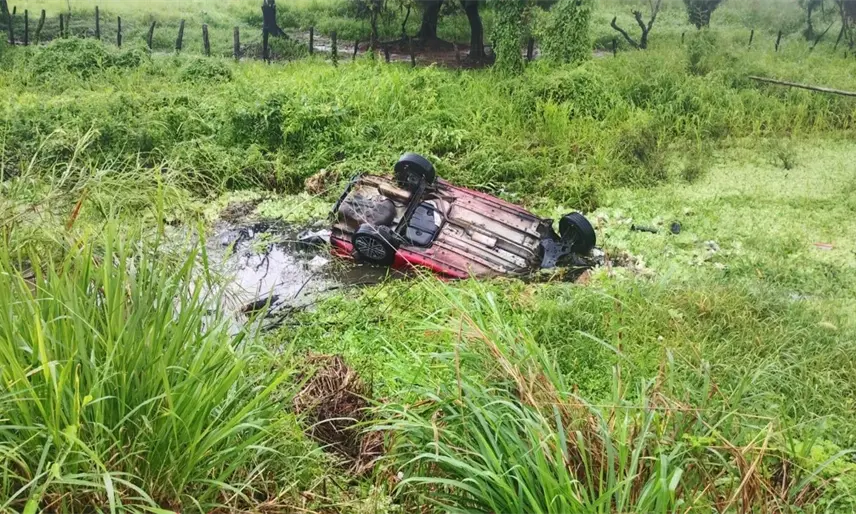 La conductora perdió el control de la unidad hasta volcar y caer en una zona pantanosa, debido al presunto exceso de velocidad, por lo que la unidad terminó llantas arriba.