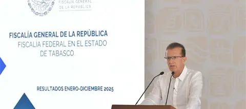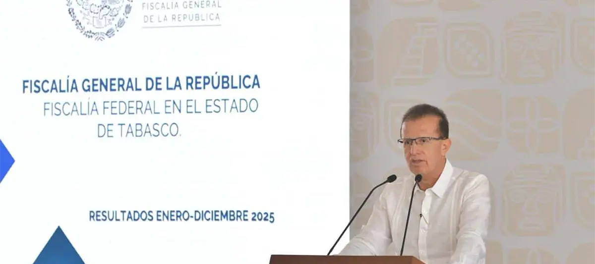 El delegado de la Fiscalía General de la República (FGR) en Tabasco, Martín Rivera Cisneros presumió que en 2025 obtuvieron 212 sentencias condenatorias, lo que representó un incremento del 363 por ciento en comparación a los últimos cuatro años.