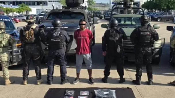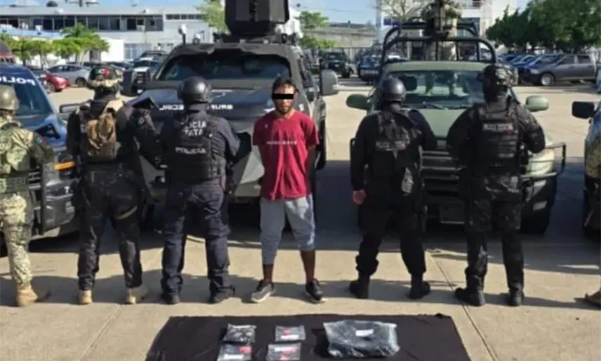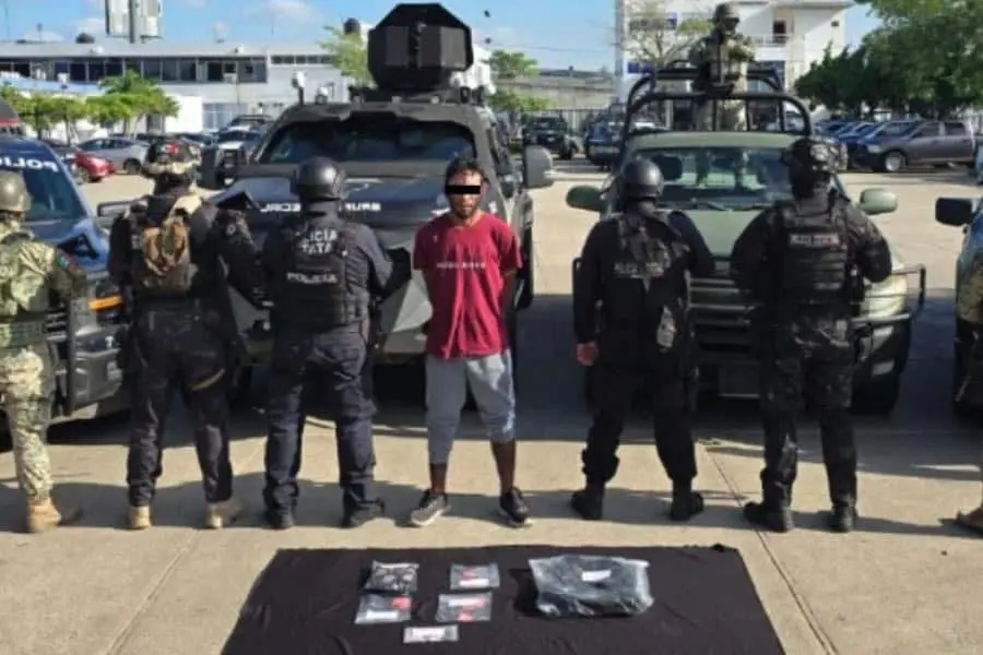 Elementos de la Fuerza Interinstitucional de Reacción Táctica (FIRT) Olmeca detuvieron a Cristian "N", alias "El Vivo", por portación de droga.
