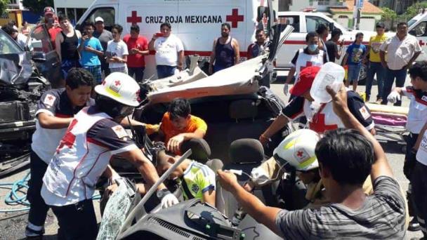 Paramédicos tuvieron que hacer uso de “las quijadas de la vida”, para sacarlos del automóvil, y posteriormente trasladarlos al hospital Rovirosa.