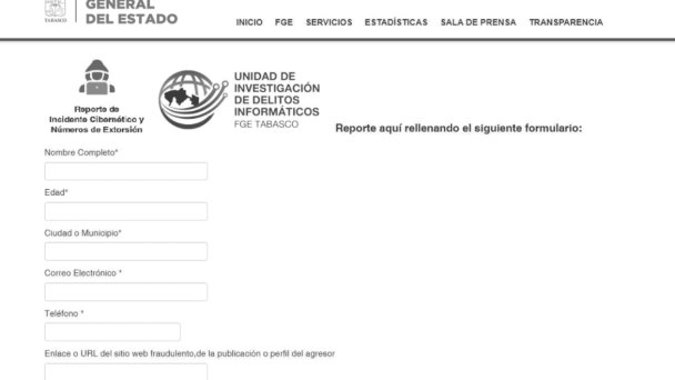 La Fiscalía General del Estado (FGE), habilitó el portal web https://www.fiscaliatabasco.gob.mx/RepPoliciaIndformatica, para denunciar o reportar posibles casos de extorsión a través de números sospechosos.
