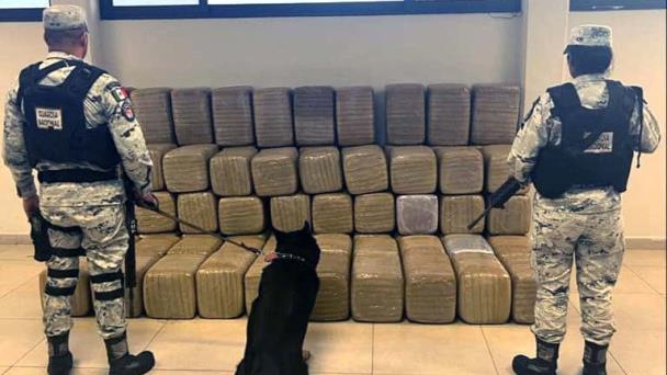 Un cargamento de aproximadamente 640 kilos de aparente marihuana fue interceptado por elementos de la Guardia Nacional en las instalaciones de una empresa de mensajería y paquetería, en el municipio de San Nicolás de los Garza, Nuevo León.