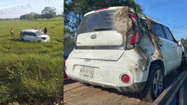La unidad modelo KIA Soul con placas del estado avanzó por varios metros sobre el terreno, por lo que fue necesario que grúas realizaran maniobras para retirarla.
