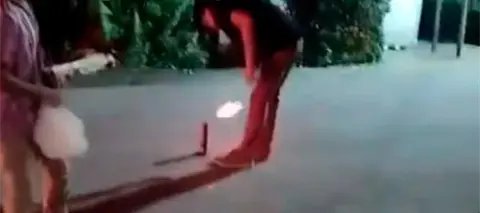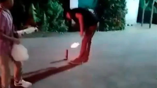 En el clip de 10 segundos, se escucha a otra persona gritar "en el ojo", mientras el joven, medio encorvado, se tapa el rostro o la zona donde le explotó el tronador.