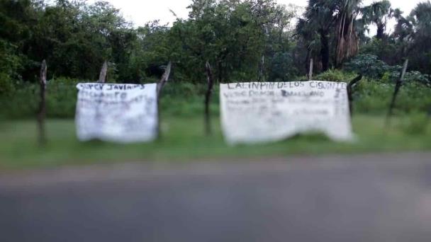 Dos presuntas narco mantas fueron localizadas ayer en la carretera Villahermosa-Frontera; en ellas lanzan amenazas a un presunto grupo delincuencial que presumiblemente opera en la zona.