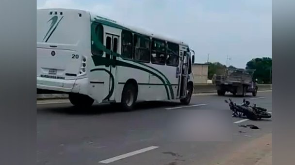 El hombre fue arrastrado varios metros, y junto a su motocicleta quedó sobre el área de rodamiento de la transitada carretera.