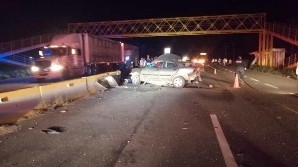 Los hechos se registraron la madrugada de ayer, en el kilómetro 27 de la citada vía, donde la unidad que presuntamente era conducida a exceso de velocidad, dio varias vueltas después de chocar contra los barda de concreto.