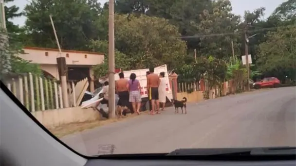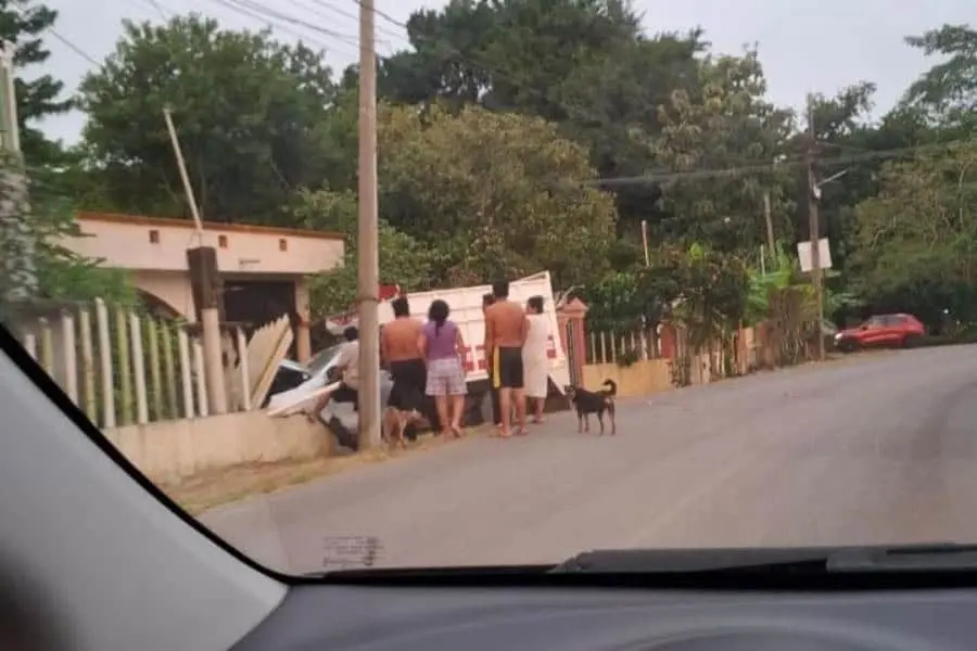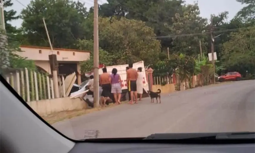 Tras perder el control, el conductor de una camioneta terminó por impactarse en contra de la protección de una vivienda en Nacajuca.