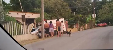 El vehículo dañó el portón de la vivienda, lo que frenó su avance e impidió que continuara hasta donde se encontraban sus inquilinos.