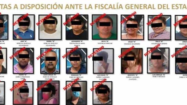 En tanto que de los 59 presuntos delincuentes detenidos, 26 fueron puestos a disposición de la Fiscalía General del Estado (FGE) y 33 más ante el Juez Calificador.