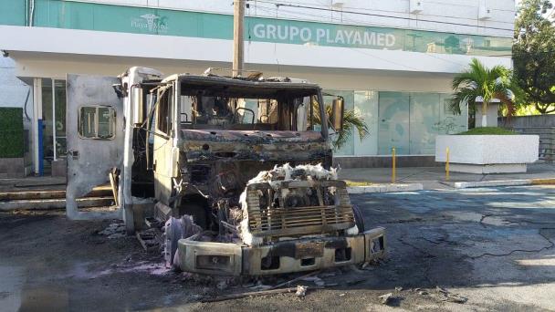 El Hospital Playamed, ubicado en Cancún, fue atacado la madrugada de este lunes por un grupo de desconocidos que quemó dos ambulancias, y dejó en el lugar mantas con advertencias.