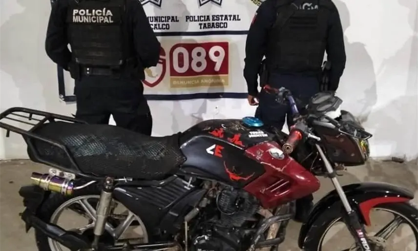 Elementos de la policía municipal de Comalcalco recuperaron una motocicleta con reporte de robo.