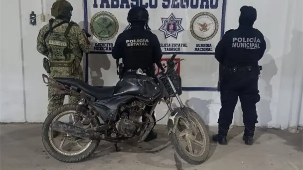 Elementos de la Policía Estatal y Municipal, recuperaron una motocicleta robada en el municipio de Comalcalco.
