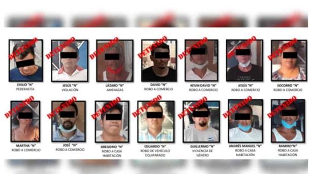 A través de un comunicado, la dependencia estatal indicó que 14 de los arrestados fueron puestos a disposición de la Fiscalía General del Estado como probables responsables de delitos de robo a comercio, de vehículo, a casa-habitación y violencia familiar.