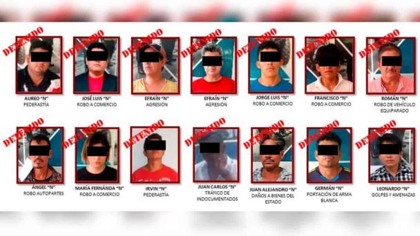 Indicó que las capturas se dieron por delitos como pederastia, robo de autopartes, robo de vehículo, robo a comercio, daños a bienes del gobierno, portación de arma blanca, amenazas, entre otros.