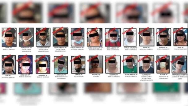 En un comunicado, la dependencia estatal informó que como resultado de las estrategias de seguridad implementadas del 13 al 19 de septiembre, se aseguraron a estas personas por delitos relacionados con robo a transeúnte, robo a comercio, robo de vehículo y robo de motocicleta.