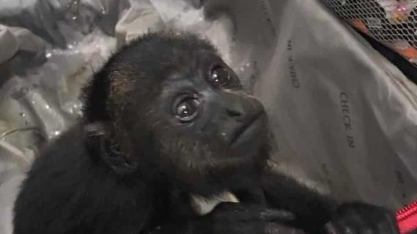 La Guardia Nacional, rescató dos ejemplares de mono aullador que eran transportados en una maleta, en Quintana Roo.