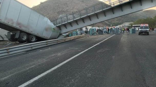 Se desploma puente peatonal sobre trailer en la carretera federal Querétaro-SLP