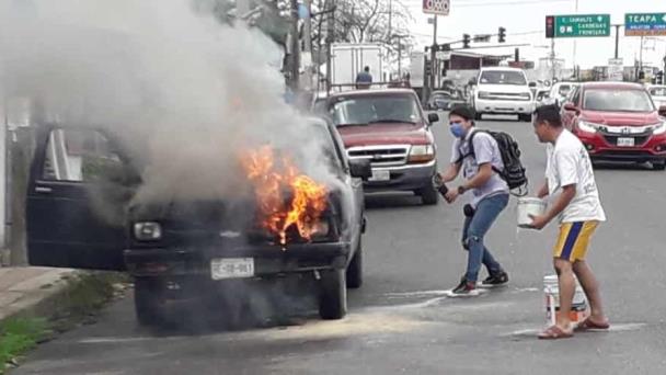 Pese al esfuerzo del propietario de la camioneta y los ciudadanos, no fue posible apagar el fuego, hasta que llegaron al lugar personal de Protección Civil, sin embargo las llamas ya habían consumido todo el motor de la unidad y parte de la cabina.