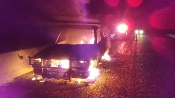 Una unidad de bomberos llegó al lugar del siniestro, sin embargo la camioneta ya se había calcinado casi por completo.