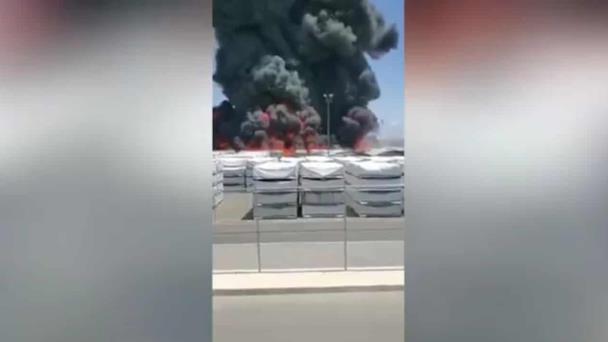De acuerdo a los trabajadores, quienes fueron evacuados, la explosión se originó en los almacenes, lo que provocó un fuerte incendio que generó una columna de humo muy alta.
