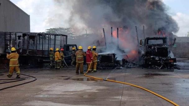 Se incendian tres camiones con artículos perecederos en Parque Industrial
