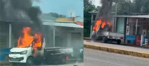 La tarde de este viernes una camioneta se incendió, por un presunto cortocircuito, en la zona conocida como La Olmeca en Huimanguillo.