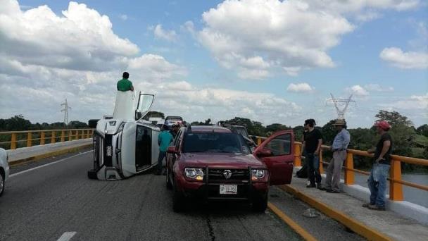 El primero de ellos se registró una volcadura de una camioneta sobre el puente Samaria, esto luego de que el conductor de la unidad perdiera el control, presuntamente tras manejar a exceso de velocidad.