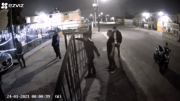 En un video captado por una cámara de seguridad que circula en redes sociales, se puede apreciar el momento en que tres individuos llegan y amenazan a la familia que se encontraba en la calle Limoneros en Rancho La Palma de dicho municipio.