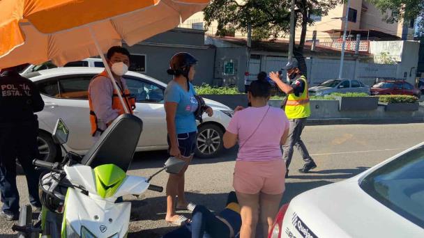 Quienes presenciaron el hecho narraron que el chofer metros atrás había rebasado a la motociclista y después se detuvo repentinamente para dar descenso a quienes traía a bordo, generando que quien conducía la moto se impactara en la parte trasera del taxi.