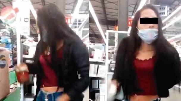 En un video que circula en redes sociales, la joven fue exhibida cuando fue sorprendida por los guardias de seguridad del Centro Comercial, tratándose de llevar varios productos sin pagarlos.