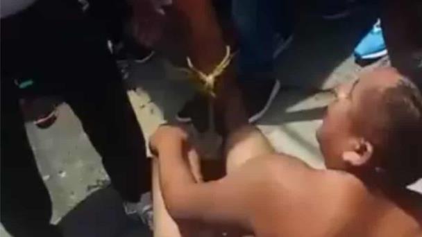 Tianguistas en CDMX detienen, desnudan y golpean a presunto extorsionador